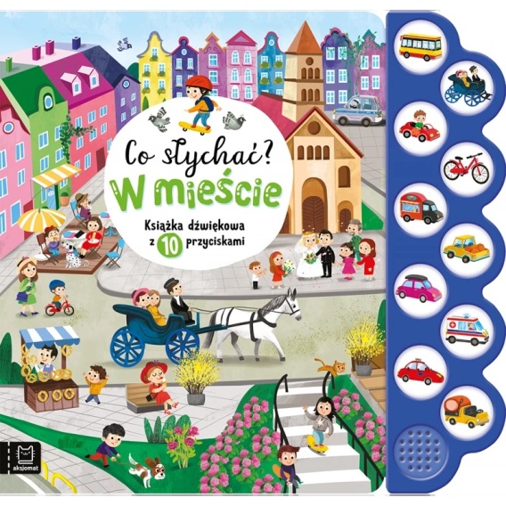 Maluchy z zapałem poznają świat, używając do tego wszystkich zmysłów. Książka dźwiękowa z przyciskami i bogatymi ilustracjami odpowiada ich potrzebom. Bawiąc się nią, dzieci poznają pojazdy, dowiadują się, jak się żyje w mieście, a powtarzając wierszyki i naśladując odgłosy, rozwijają pamięć, słuch oraz wrażliwość na słowo i obraz.