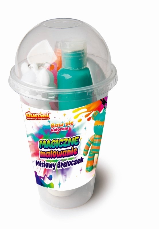 – w zestawie: 1 x miś – breloczek, 1 x papierowy kubek, 1 x łyżka, 2 x farbka 30 ml;