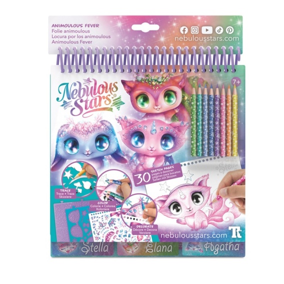 - Fantastyczna opowieść o bohaterkach Nebulous Stars – W szkicowniku znajdziesz także historię o Stellii, Elanie i Agathcie – magicznych przyjaciółkach z uniwersum Nebulous Stars, które inspirują, pobudzają wyobraźnię i dodają czarodziejskiego klimatu każdej zabawie.