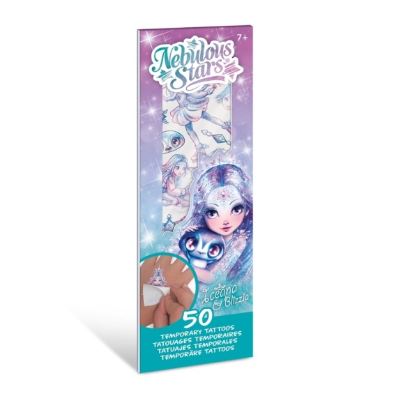 Zestaw tatuaży z bohaterkami Iceaną i Blizzią to prawdziwa gratka dla młodych fanek Nebulous Stars. Utrzymane w fioletowo-morskiej palecie barw, wzory odzwierciedlają urok lodowych krain, delikatnych śnieżynek i magicznych zwierząt. Idealny wybór dla dziewczynek, które lubią wyrażać siebie poprzez subtelne i bajkowe ozdoby.