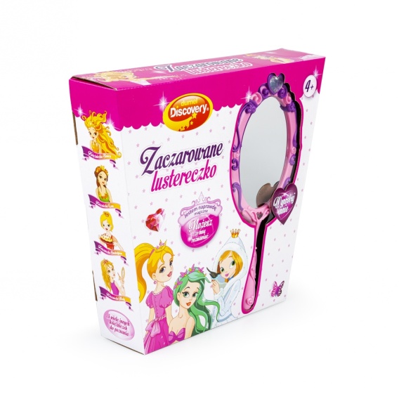 Zaczarowane Lustereczko to doskonała propozycja zabawy dla dziewczynek, które kochają księżniczki i marzą żeby zostać jedną z nich… Jeżeli chcesz dowiedzieć się jaką jesteś księżniczką, spytaj: Jaką jestem księżniczką? W tym celu lustereczko zada Ci pytania, aby lepiej Cię poznać i powiedzieć Ci jaką księżniczką jesteś. Jeżeli chcesz posłuchać muzyki, powiedź: Zagraj mi coś. Lustereczko ma dla Ciebie 3 piękne melodie. Jeśli masz ochotę posłuchać bajek, powiedz: Opowiedz mi bajkę. Usłyszysz wtedy 10 niesamowitych historii o wielu księżniczkach. Możesz również zadać lustereczku wiele pytań podanych w instrukcji obsługi takich jak: Ładnie dziś wyglądam? Czy wróżki naprawdę istnieją? oraz wiele innych. Zaczarowane Lustereczko uczy kreatywnego myślenia, koncentracji oraz uruchamia wyobraźnię dziecka. Zabawka posiada 3 tryby: demo, quide oraz play.